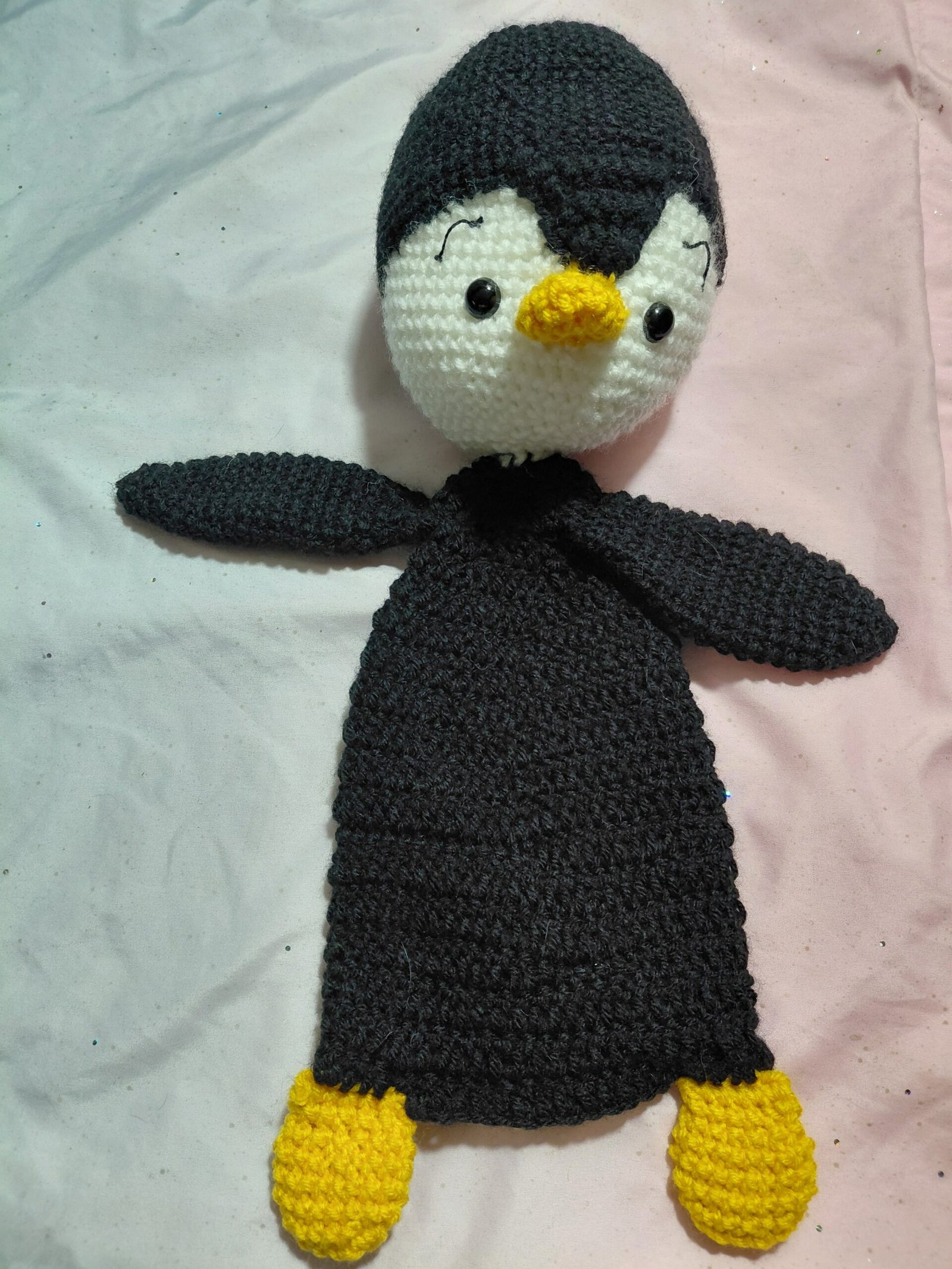 Waddle your way into your baby’s heart with this adorable Penguin Lovey! This charming little guy features a classic black and white penguin head with a bright yellow beak, sweet safety eyes, cute stitched eyebrows, and a flat cuddly body complete with flipper wings and sunny yellow feet.