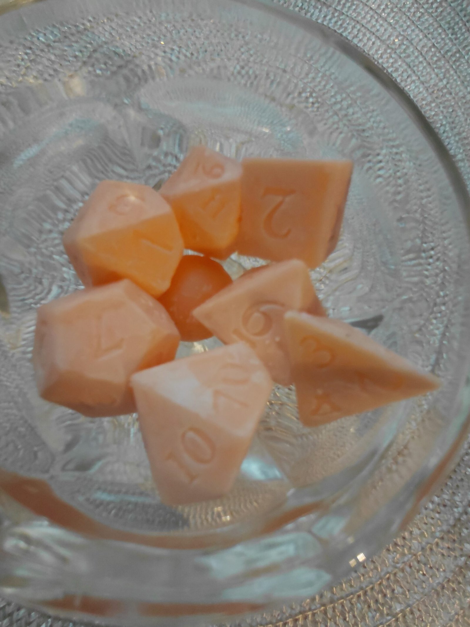 Level up your wax warmer with these fun polyhedral dice wax melts! Shaped like a classic RPG dice set — including d4, d6, d8, d10, d12, and d20 — these hand-poured melts are a must-have for tabletop gamers, D&D fans, or anyone who loves unique home fragrance. Scented with bright, zesty orange citrus to keep your space smelling fresh and energized.